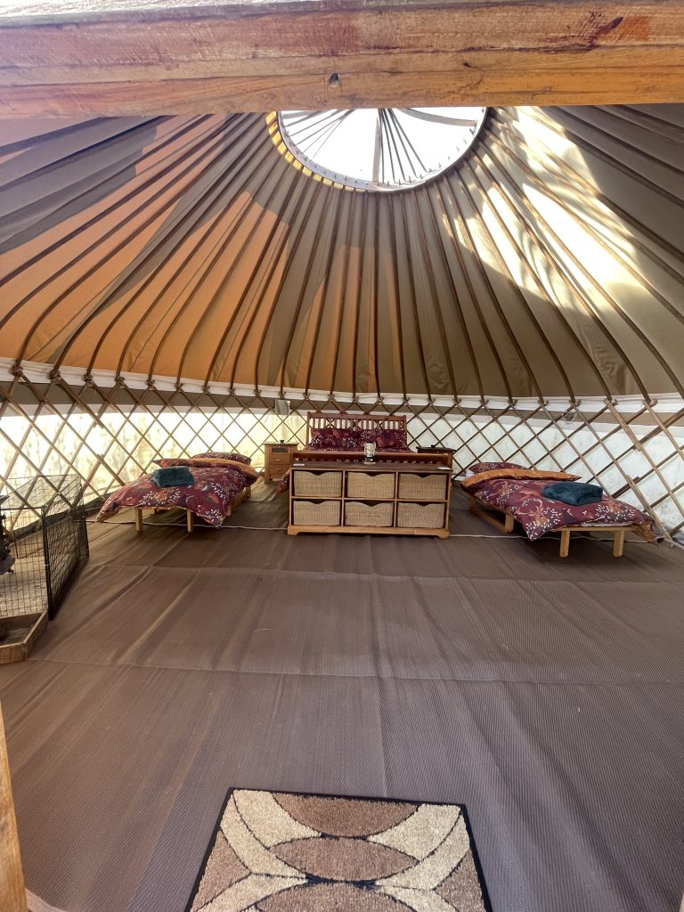 Set across seven scenic acres, our site features just five handcrafted yurts and one spacious safari tent. Each comes fully equipped with cosy beds, wood burners, outdoor seating, and fairy-lit charm. There’s room for couples or families looking to unwind in style.